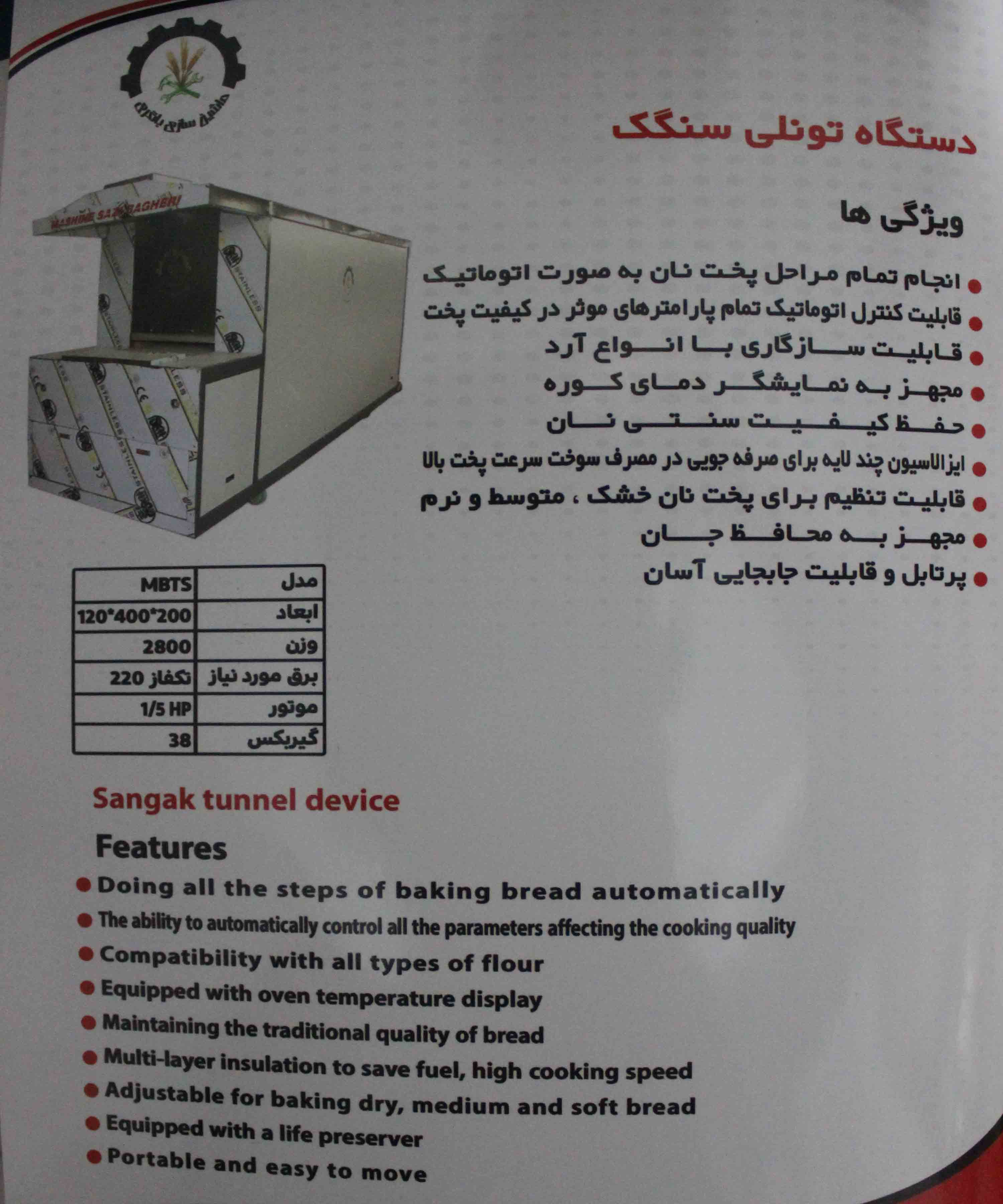 وی درتوضیح ویژگی های دستگاه روتاری تافتون بیان داشت: دستگاه روتاری تافتون با وزن 2000 کیلوگرم ، دستگاه تونلی سنگک و دستگاه تونلی بربری با وزن 2800 کیلوگرم دارای ویژگی های چون انجام تمام مراحل پخت نان به صورت اتوماتیک، قابلیت کنترل اتوماتیک تمام پارامترهای موثر در کیفیت پخت، قابلیت سازگاری با انواع آرت آرد، مجهز به نمایشگر دمای کوره، حفظ کیفیت سنتی نان ، ایزالاسیون چند لایه برای صرفهجویی در مصرف سوخت سرعت پخت بالا ، قابلیت تنظیم برای پخت نان خشک ،متوسط و نرم ف پرتابل و قابلیت جابجایی آسان و مجهز به محافظ جان می باشد.