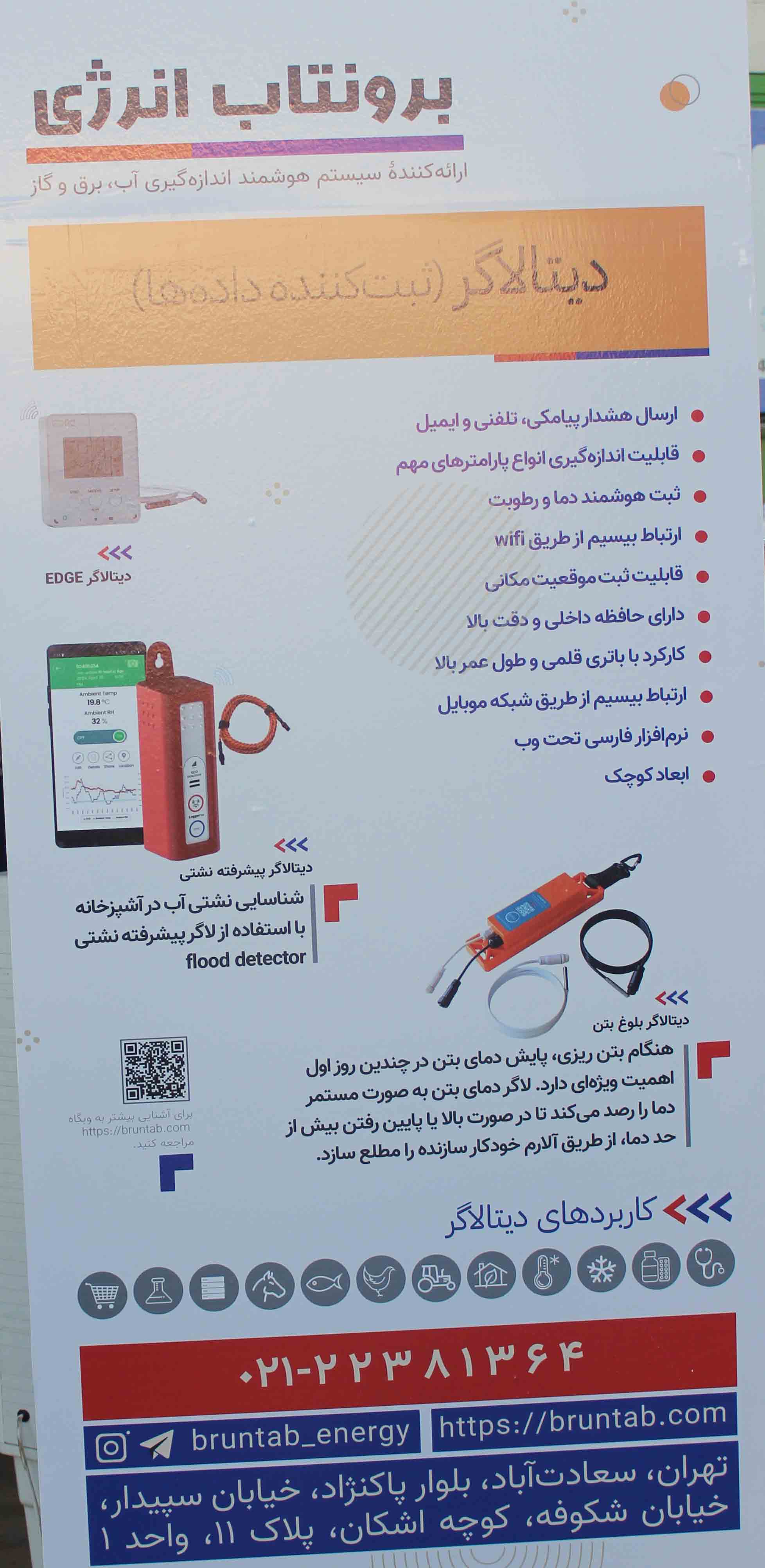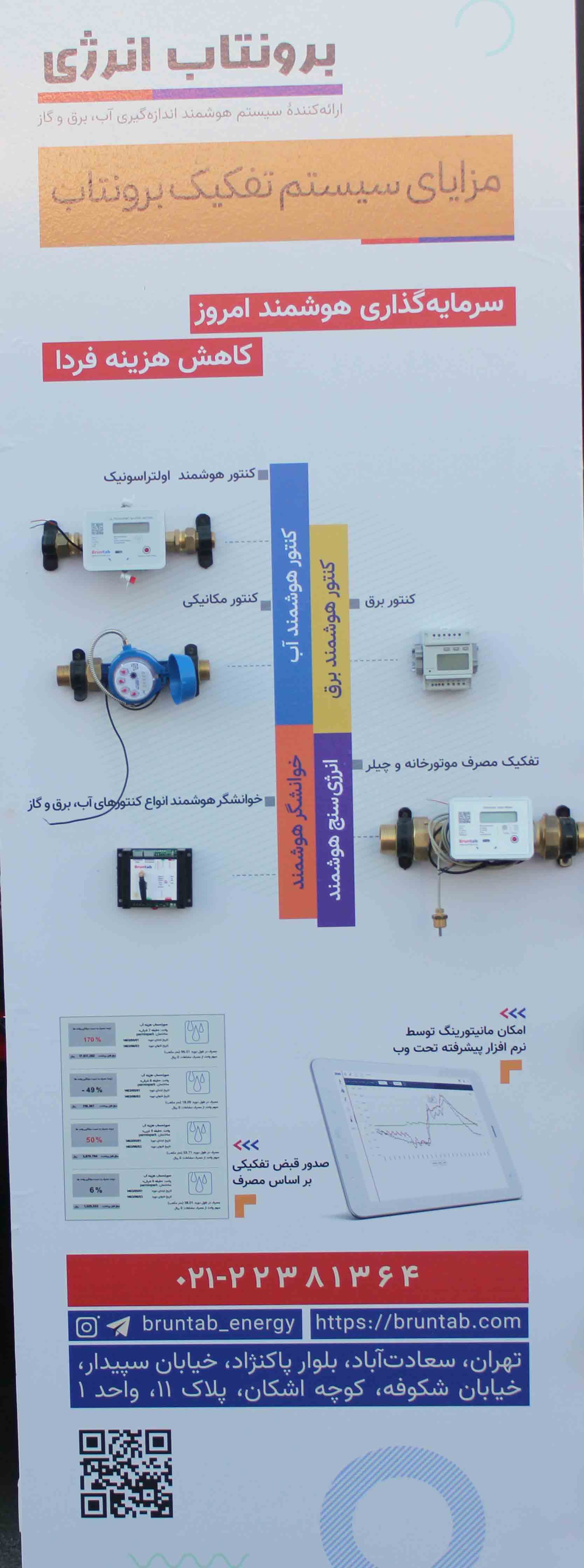 خبرایران : شرکت دانش بنیان برونتاب انرژی (Bruntab)، از سال 1390فعالیت خود را با محوریت تفکیک مصرف آب، برق، گاز، گرمایش موتورخانه و سرمایش چیلر با اخذ نمایندگی از شرکت دانمارکی 108 ساله بروناتا آغاز کرد. برونتاب در ساختمانهای مسکونی، تجاری و اداری برای هر واحد تجهیزات و کنتورهای هوشمند نصب می نماید که مصرف هر واحد را مشخص می کند. در صنایع و کارخانجات نیز با نصب تجهیزات مانیتورینگ، باعث کاهش مصرف و بهینه سازی می شود. این شرکت از سال ۱۳۹۷ صادرات خود به کشورهای تراز اول را آغاز نموده است.